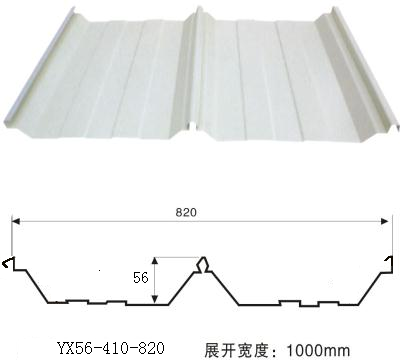 角驰III型屋面板,主要特征表现在热胀冷缩,滑动性好,板与板之间防水性能好,最早都是760板宽的,能充分满足北方大部分地区的荷载情况,现在在南方由于屋面荷载比北方小(主要是雪荷载),为了节省材料,板宽改成了820型的。角驰Ⅲ56-410-820型 该系列压型板解决了常规系列压型板的屋面渗漏问题,压型板的连接打破了传统屋面用螺栓连接的惯例,安装方法采用360°锁口咬合安装,使屋面防水效果更加完好。 该压型板属咬口屋面板,具有波峰高、强度大、无螺钉